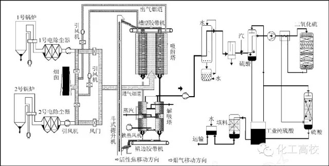 活性焦煙氣脫硫技術(shù)工藝流程示意